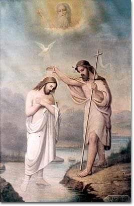 2 . Fathers of the Church commented that in the baptism of Jesus the sacrament of baptism was born. It was a symbolic action that, though the grace of Christ, was changed into an ontological action. When we receive a sacrament, the grace flows to us from the sacrament, but in the baptism of Jesus the grace of Christ flowed into the sacrament.