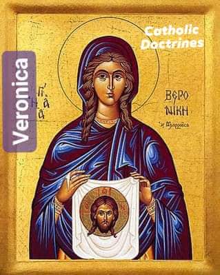 An early medieval story says that Veronica was from Jerusalem and was one of the pious women who encountered Jesus Christ on the Via Dolorosa to Mount Calvary. she offered a cloth to wipe the face of Jesus, which then resulted in a portrait of His face on the cloth (now kept as a relic in Saint Peter’s basilica in Rome).